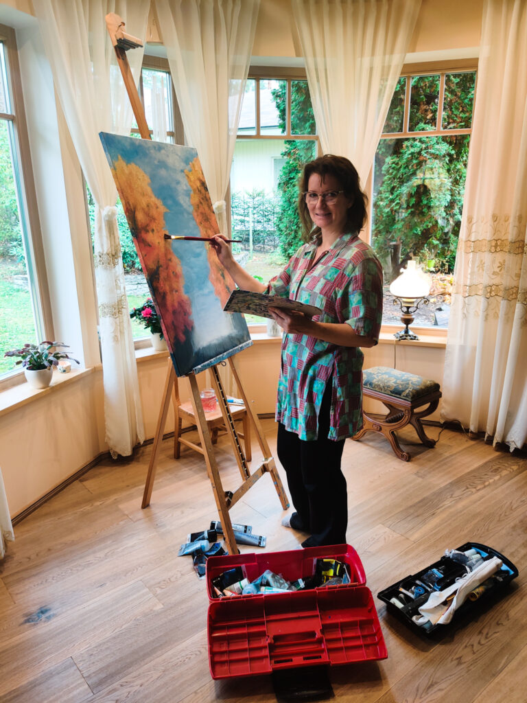 Maalimine on minu jaoks uue reaalsuse loomise protsess, seega väga põnevas maailmas seiklemine. Unistad või lihtsalt mõtiskled millegi üle ja pildid hakkavad filmina silme ees jooksma…püüan mõne kinni ja kannan lõuendile😊.
