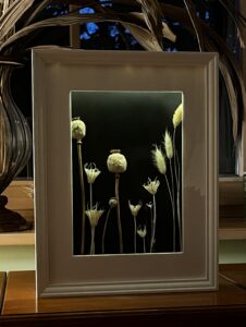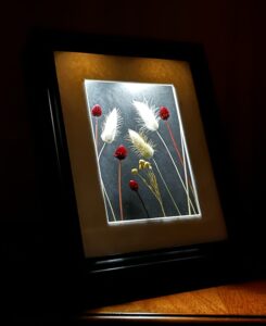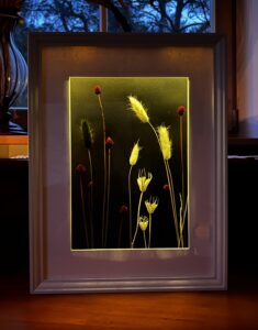 Valguspilt on kuivatatud looduslike taimedega kujundatud ruumiline pilt, millele on lisatud valgus.